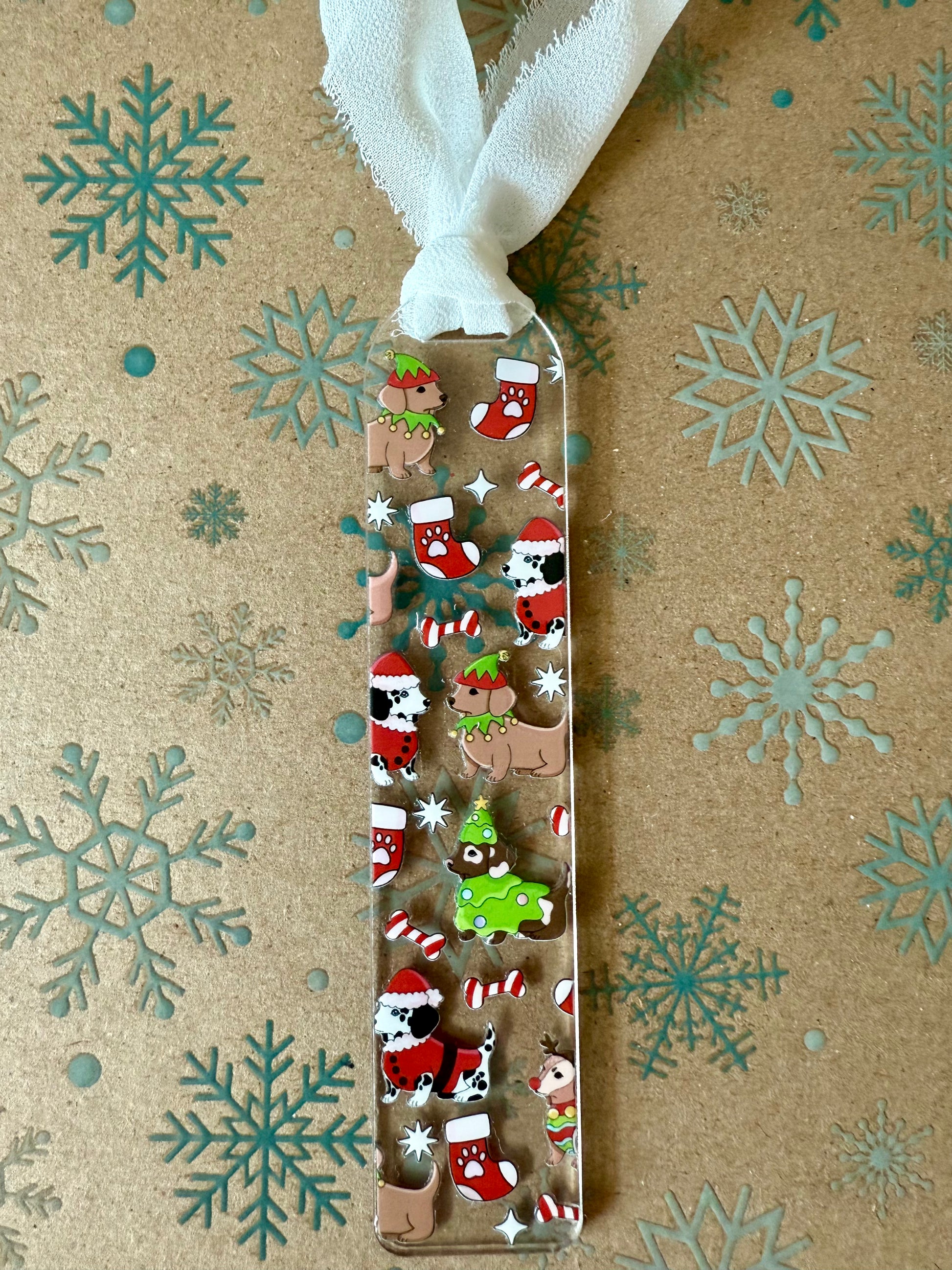 ACRYLIC BOOKMARK - HOLIDAY DOGGIES