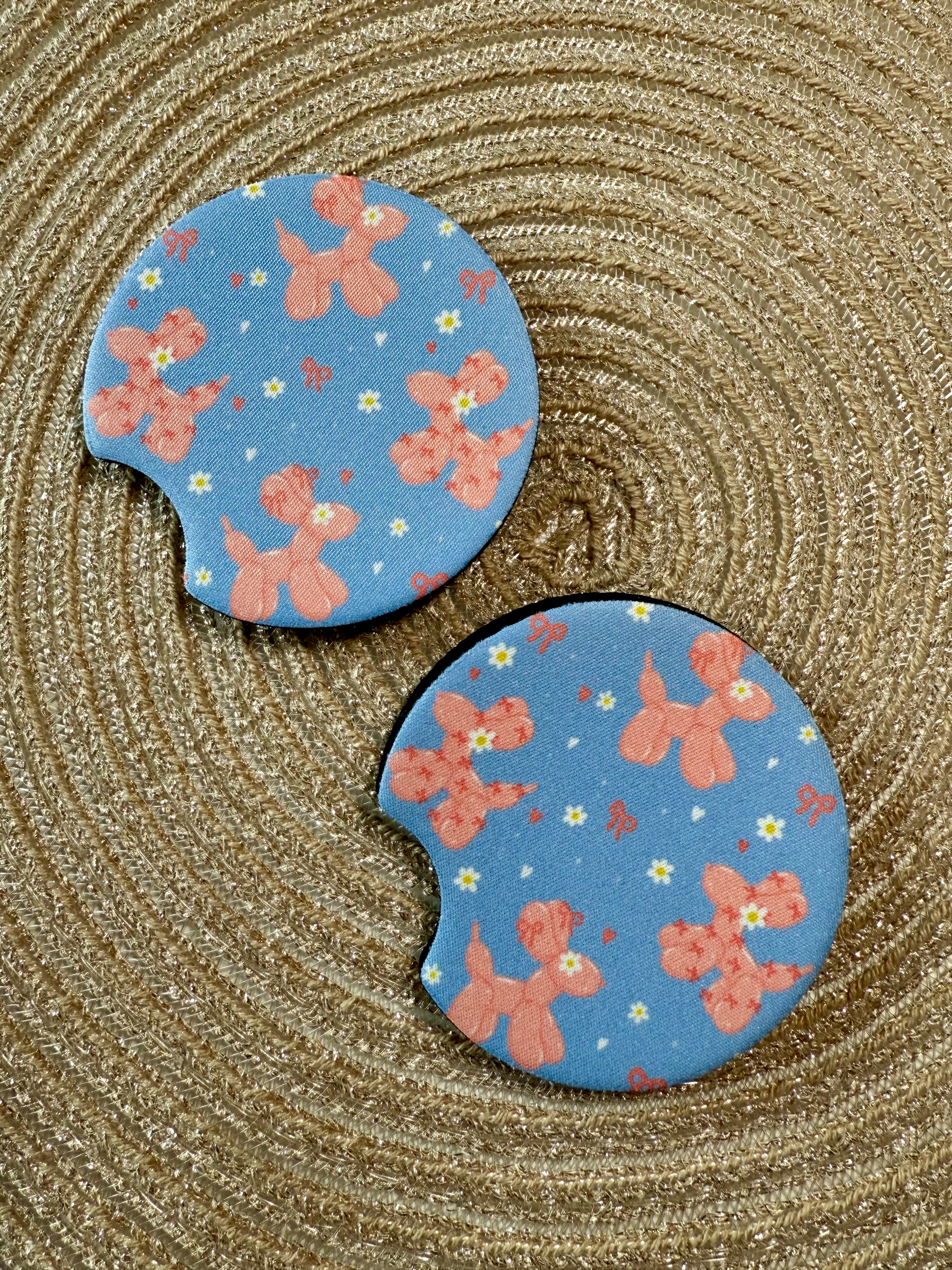 CAR COASTER SET - PINK BALLOON DOGS